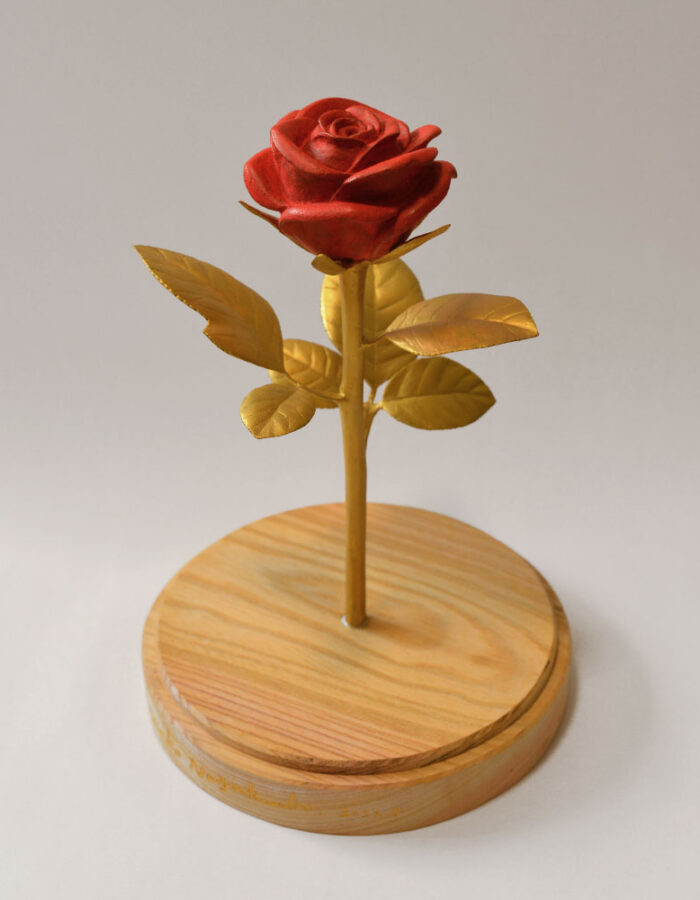 ヒノキ、漆、乾漆粉、真鍮粉、岩絵具、アクリル絵具、ケヤキ(台座)